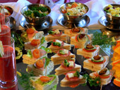 i imprez firmowych. Oferujemy zestawy wykwintnych kanapek, koktaili i surówek. Zorganizujemy grila na świeżym powietrzu z pieczonym mięsem i swojskim jadłem oraz bogatym wyborem kiełbas, szynek i pasztetów.
